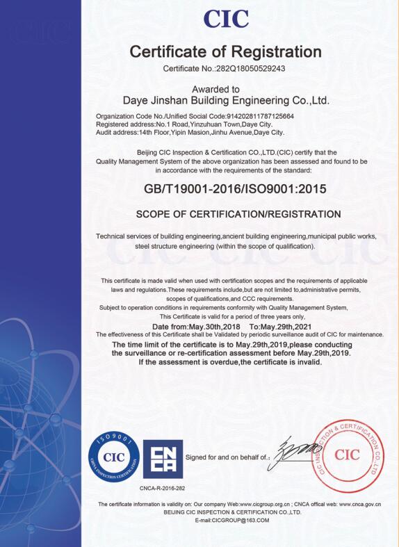 大冶金山建筑工程有限公司是一家專業從事建筑安裝總承包、園林古建筑、園林綠化景觀工程、文物修繕、市政道路工程、鋼結構工程等綜合型施工企業,公司具有資本投資運營合作實力。